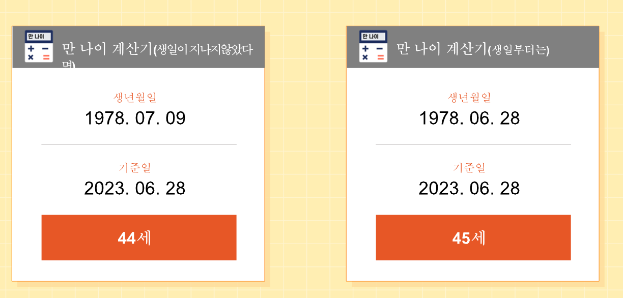 만 나이 계산하기 (생일이 지나지 않았을때 와 생일부터 )