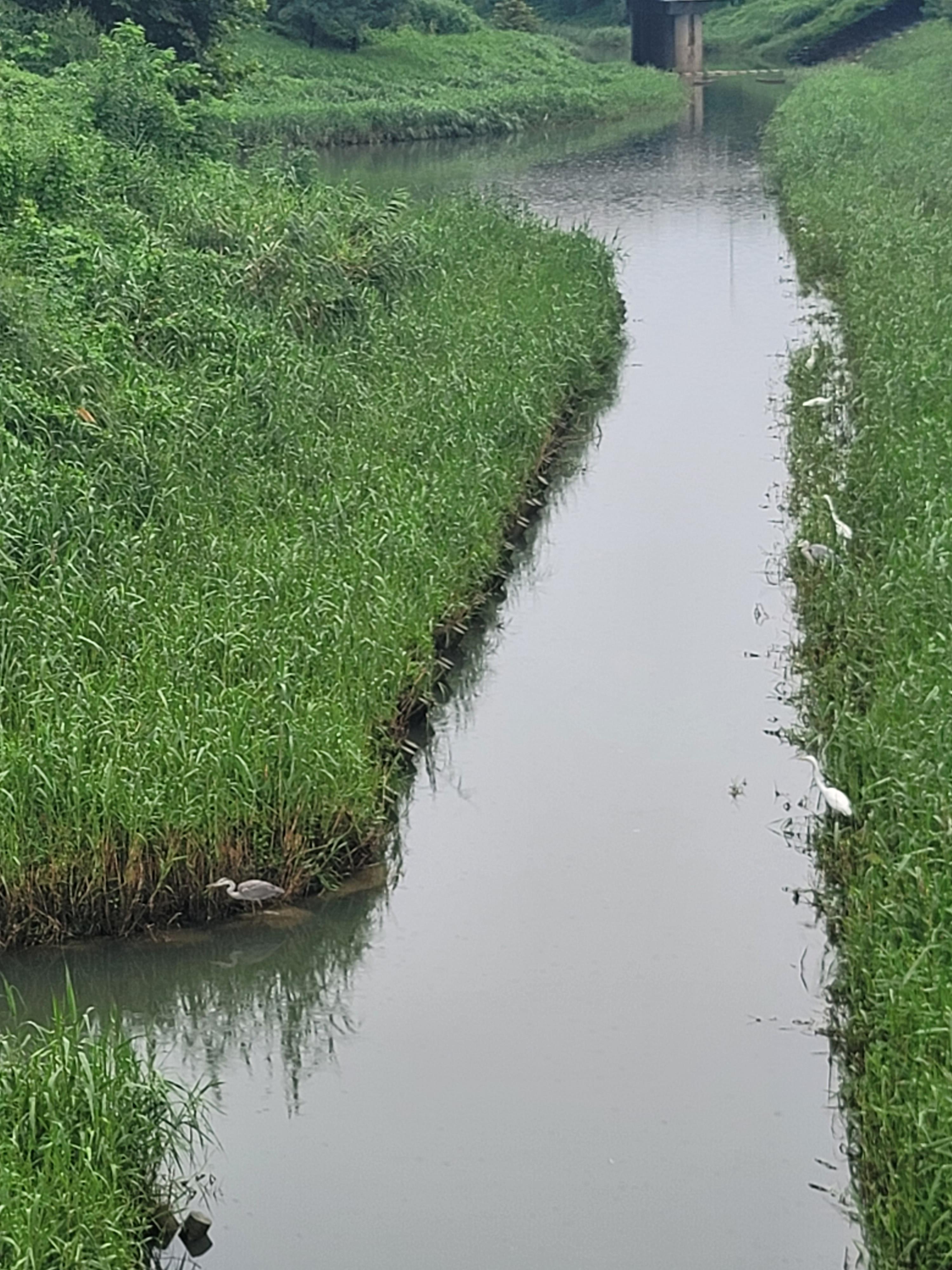 비만 오면 왜가리들도 어디서 오는지 많이 나타나지요 오늘은 일렬로 나란히 많이 있네요 동요 없이 물고기 지나가길 지키고 있는 왜가리들 사진으로 한 컷 입니다