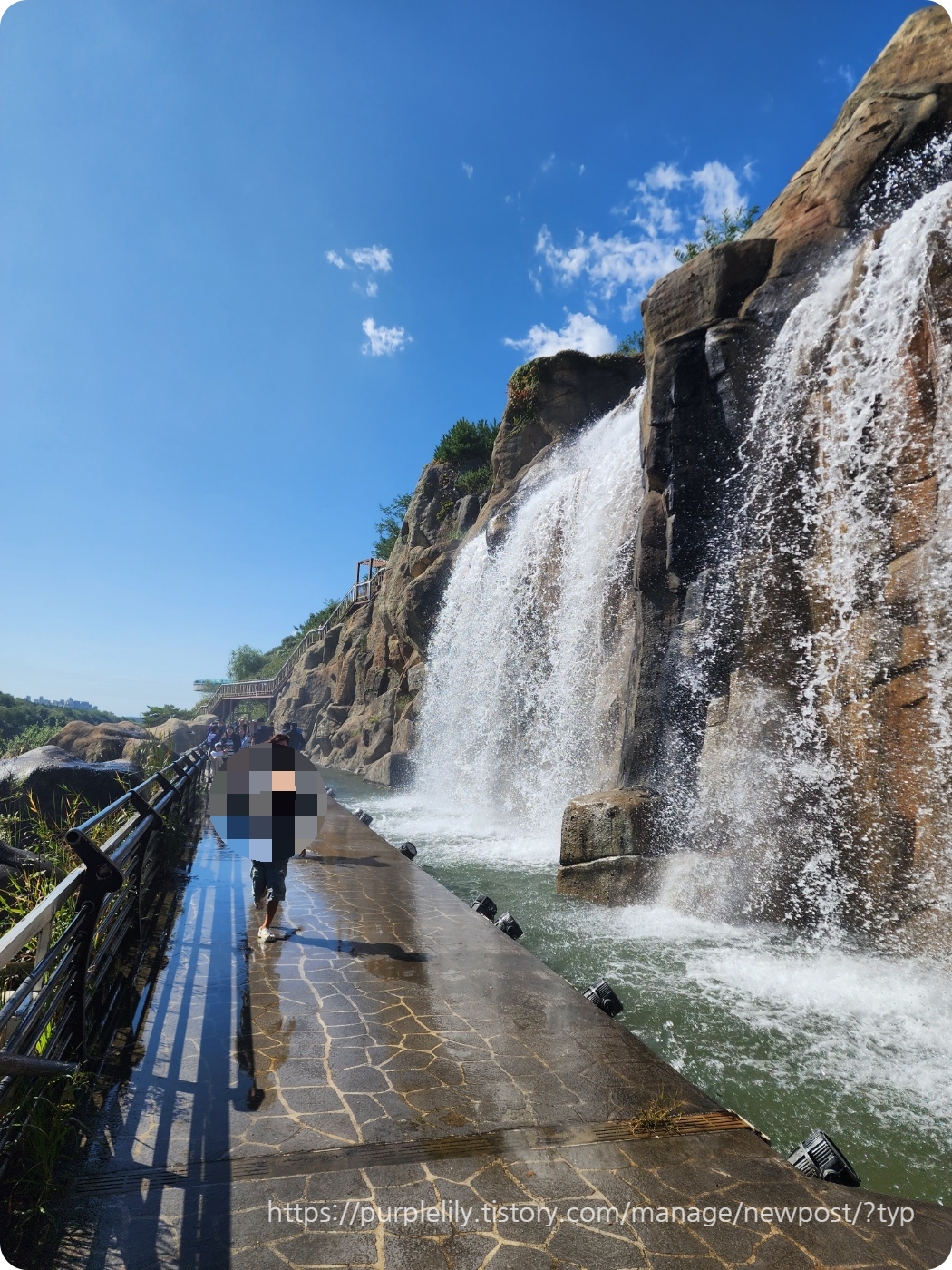 폭포도 나오는 시간이 있다고 해서 지나다가 때마침 맞아서 폭포보고 왔답니다 아라뱃길 전망대도 다녀오고 폭포도 보고 날씨가 너무 예쁜날 이었습니다