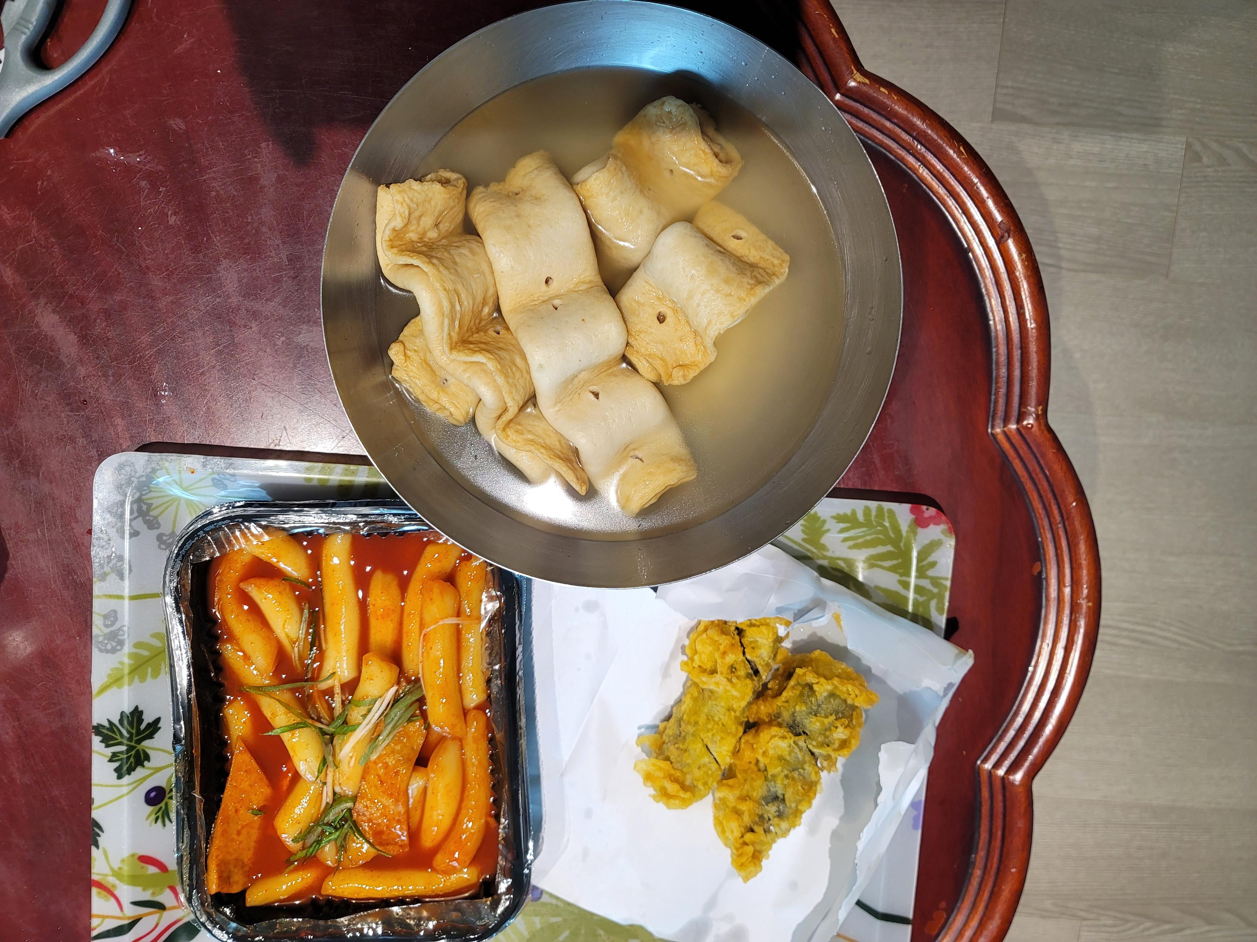 작전역에서 분식즐겨보기 오랜만에 분식으로 점심을 먹고자 포장으로 어묵과 떡볶이 김말이 튀김으로 오래된상을 펼쳐놓고 예쁜그릇은 포기하고 맛있게 먹기로 혼자는많고 둘이서 그런데로 먹을만했네요 함께잘어울리는 조합이지요 매콤한 떡볶이에 바삭한 튀김 매콤함을 잡아줄 어묵과 함께 부실한 듯 든든한 점심이었습니다