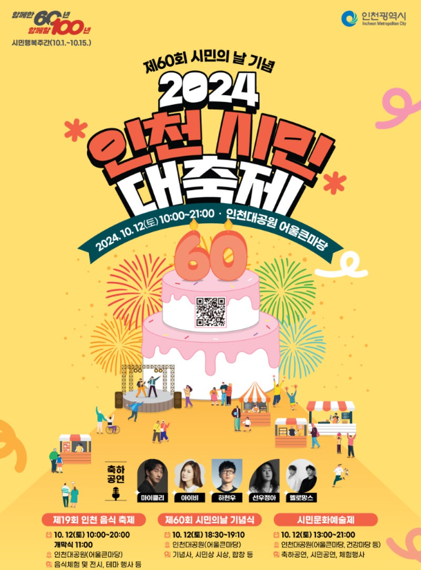 인천대공원 어울큰마당에서 인천시민의날 축제가 열립니다 대공원은 봄이면 늘가던곳인데 가을에도 한번쯤가보고싶네요 가까운곳에사시는분들과 시간되시는분들은 하루종일 소풍삼아 놀러가세요 먹거리볼거리즐길거리 하루종일 보내랴할듯합니다